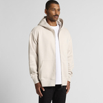 Zip hood, CVC fleece, 2-way YKK zip, inset sleeves, self-fabric hood lining, 2x2 cuff and hem ribbing